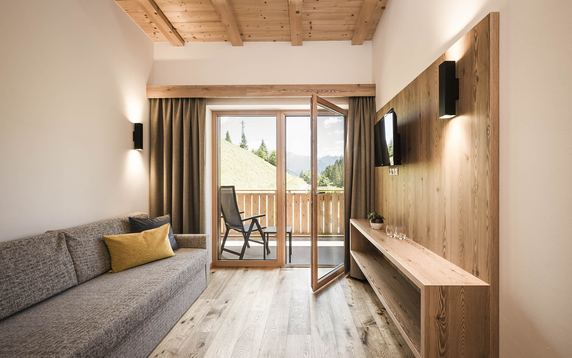 Doppelzimmer, Mehrbettzimmer, Doppelbett, Zustellbett, Bettsofa, Balkon, Zimmer mit Verbindungstür, Allergikerzimmer, Safe, Nichtraucherzimmer, Dusche / Bad, 2 oder mehr Bäder, Separates WC, Bidet, Haarfön, TV, WLAN, Haupthaus, Panoramablick, Südseite