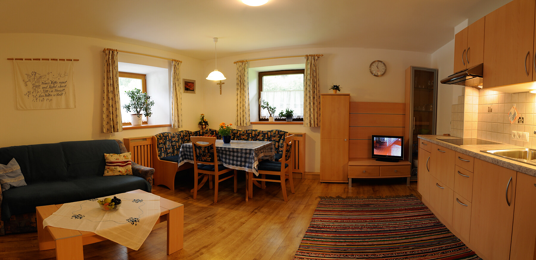 Doppelbett, Zustellbett, Babybett, Doppelschlafcouch, Garten, Bettwäsche vorhanden, Wohnküche, Kaffeemaschine, Elektroherd, Geschirrausstattung, Dusche/Bad, Badetücher, TV, Satellit/Kabel, Reinigung auf Anfrage, Haupthaus, Panoramablick