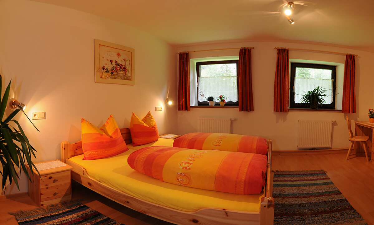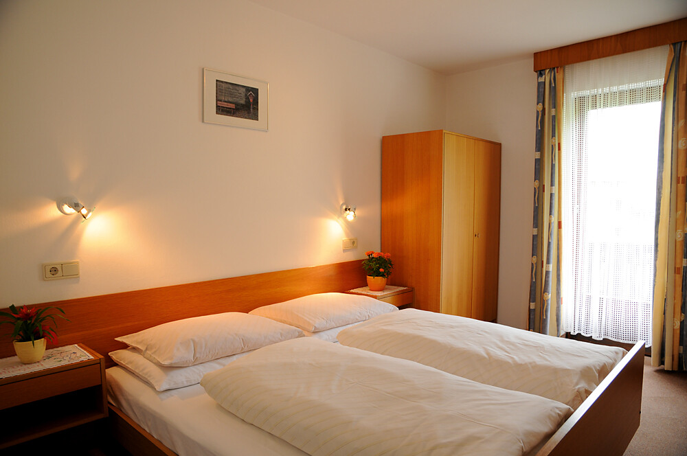 Doppelzimmer, Doppelbett, Zustellbett, Etagenbett, Bettsofa, Balkon, Dusche / Bad, Haupthaus, Südseite