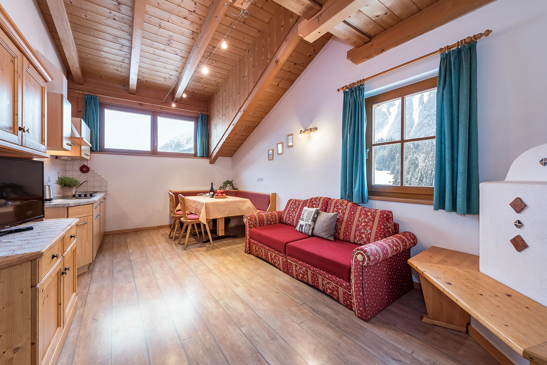 Doppelbett, Doppelschlafcouch, Balkon, Garten, Bettwäsche vorhanden, Nichtraucher-Apartment, Wohnküche, Kaffeemaschine, Gasherd, Elektroherd, Geschirrausstattung, Dusche/Bad, Bidet, Haarfön, Badetücher, Waschmaschine im Apartment, Satellit/Kabel, WLAN, Haupthaus, Südseite