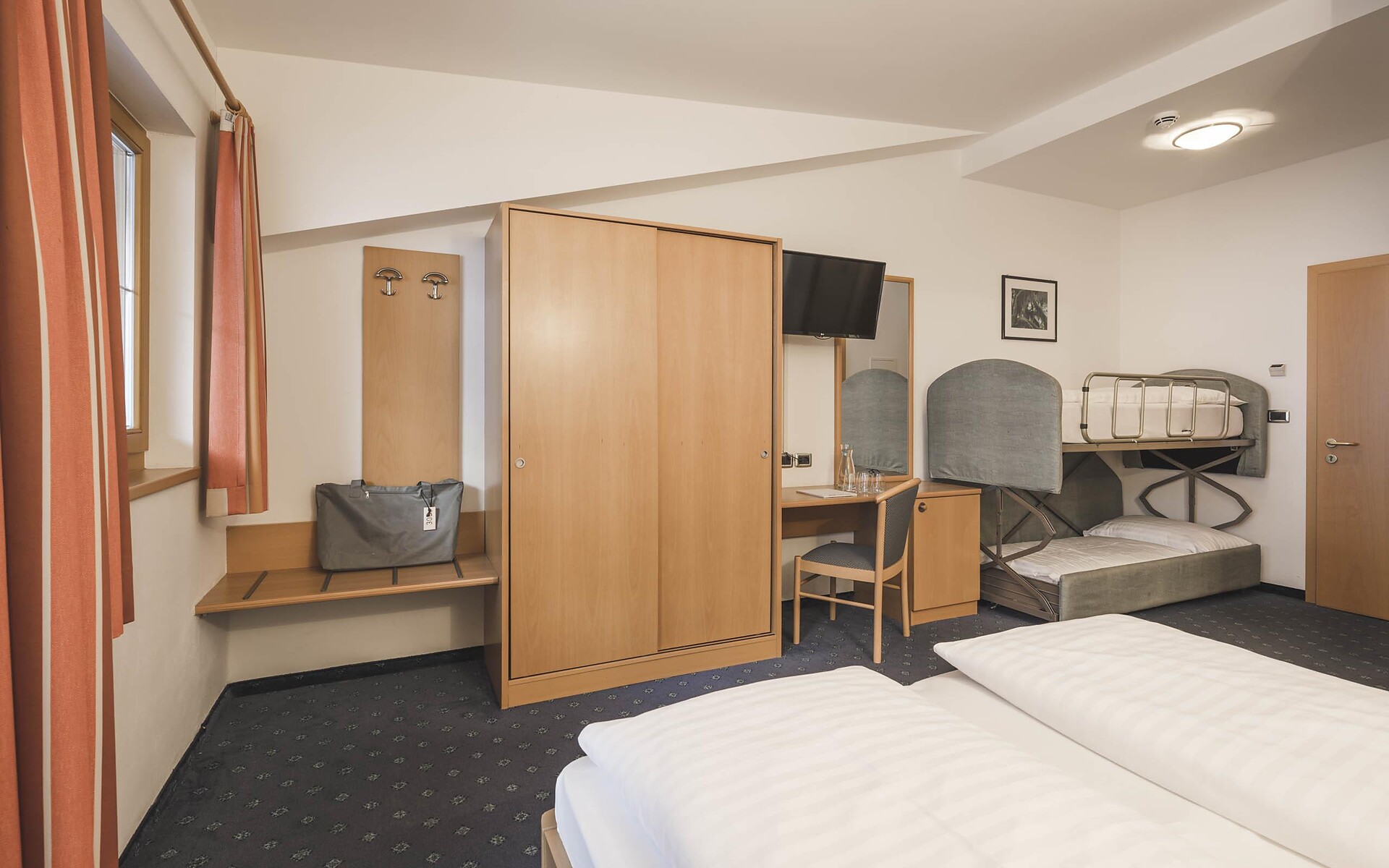 Doppelbett, Babybett, Bettsofa, Safe, Dusche / Bad, Haarfön, TV, WLAN