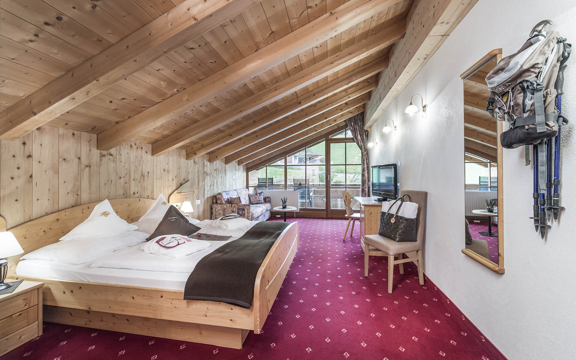ca. 65 m²+15m² Loggia - 1 living room and 1 bedroom with sliding door, or the living room turns into the second bedroom, sitting area, sofa, Tyrolean stove, 2 TVs, safe, minibar, Jacuzzi, shower, WC, vanity mirror, hairdryer, telephone, panoramic terrace with view over the valley