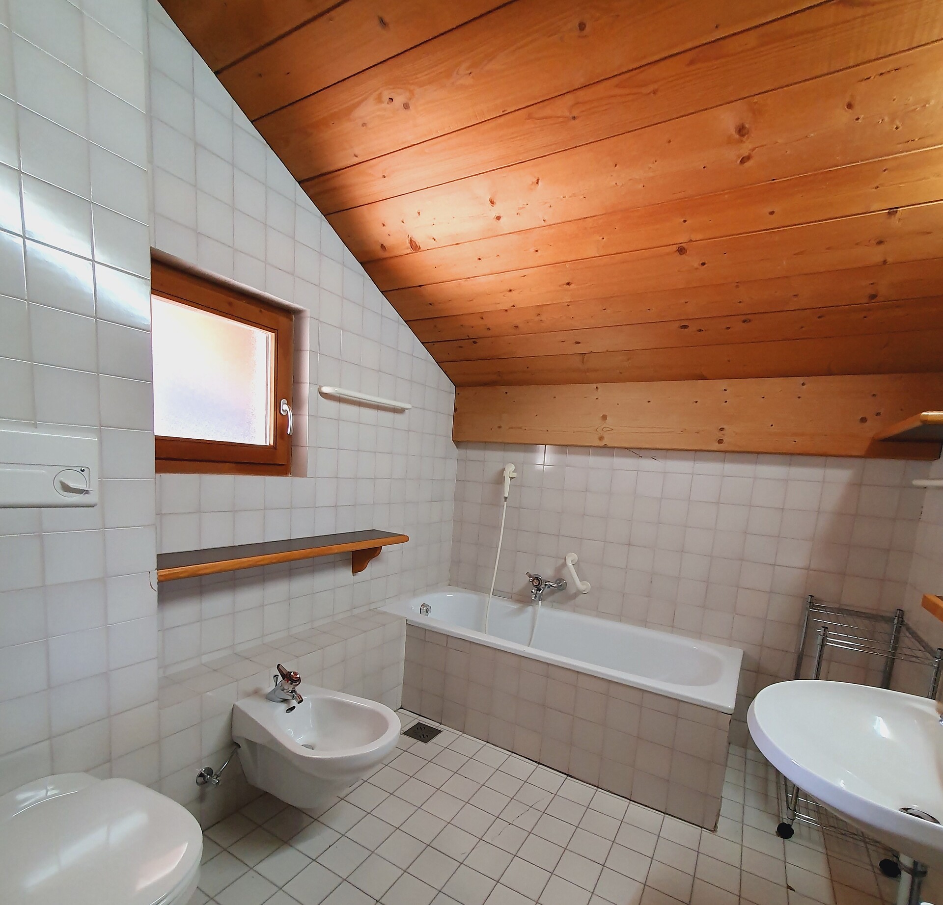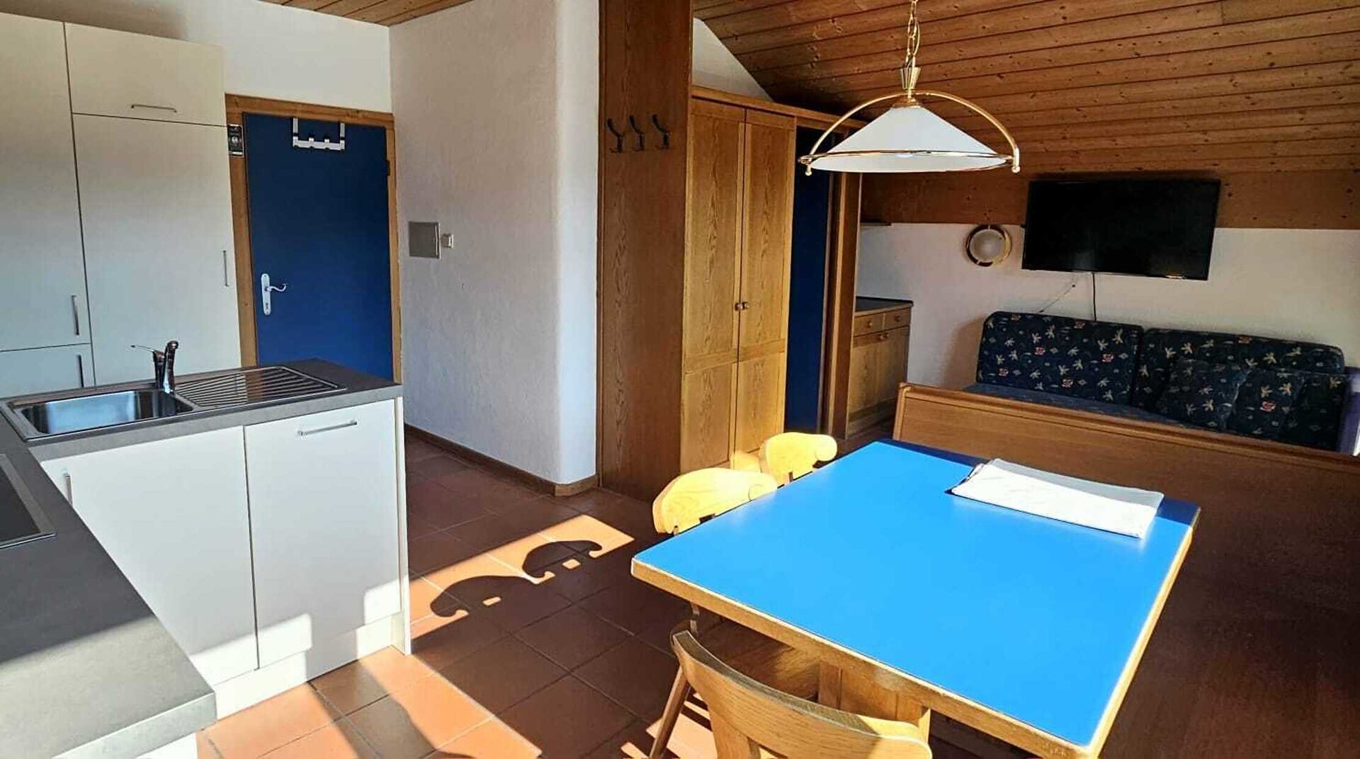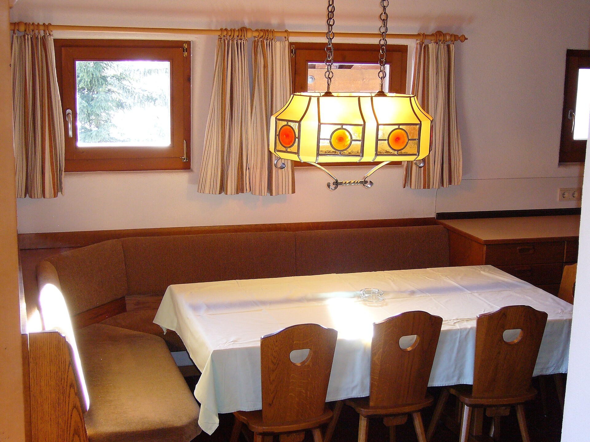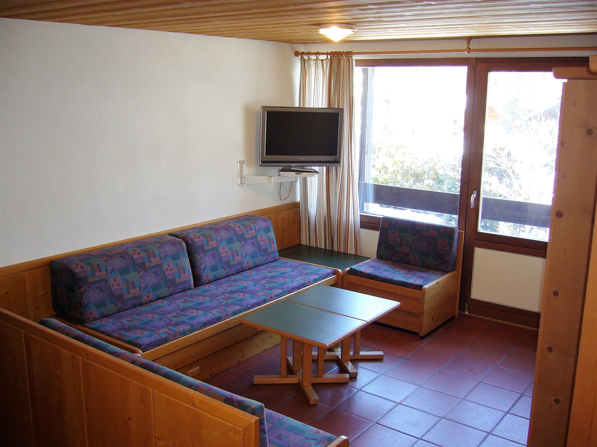ideal for 3 adults: 2- room-apartment with balcony, 1 bedroom with double bed, pull-out sofa bed, TV and dining table in the living area, kitchenette; bathroom with bathtub and bidet. Towels and bed linen are included in the room rate; The flat is located on the first floor and is only accessible via the internal staircase.