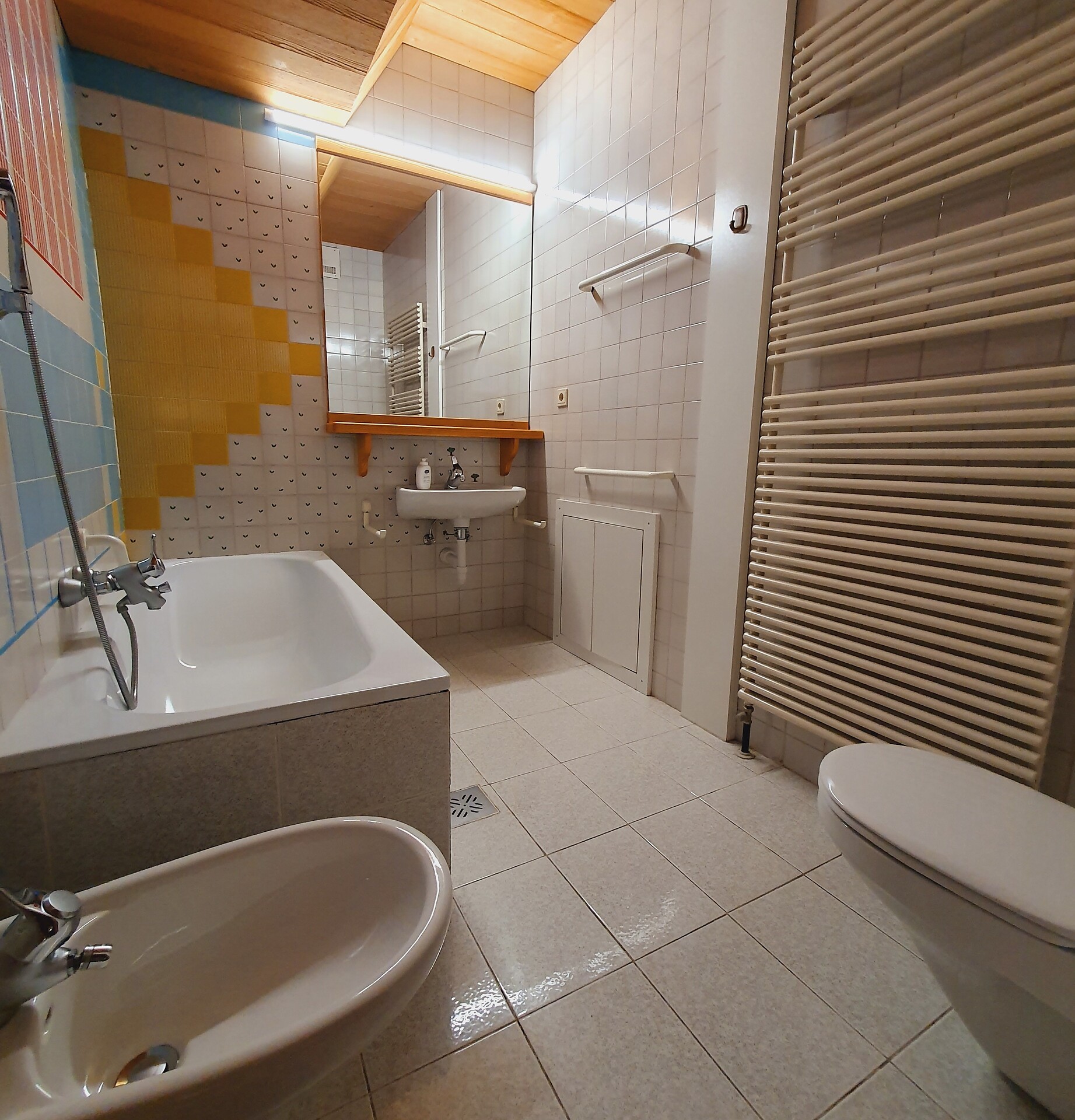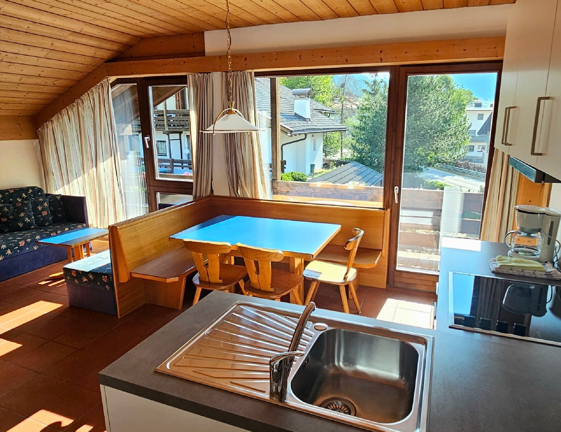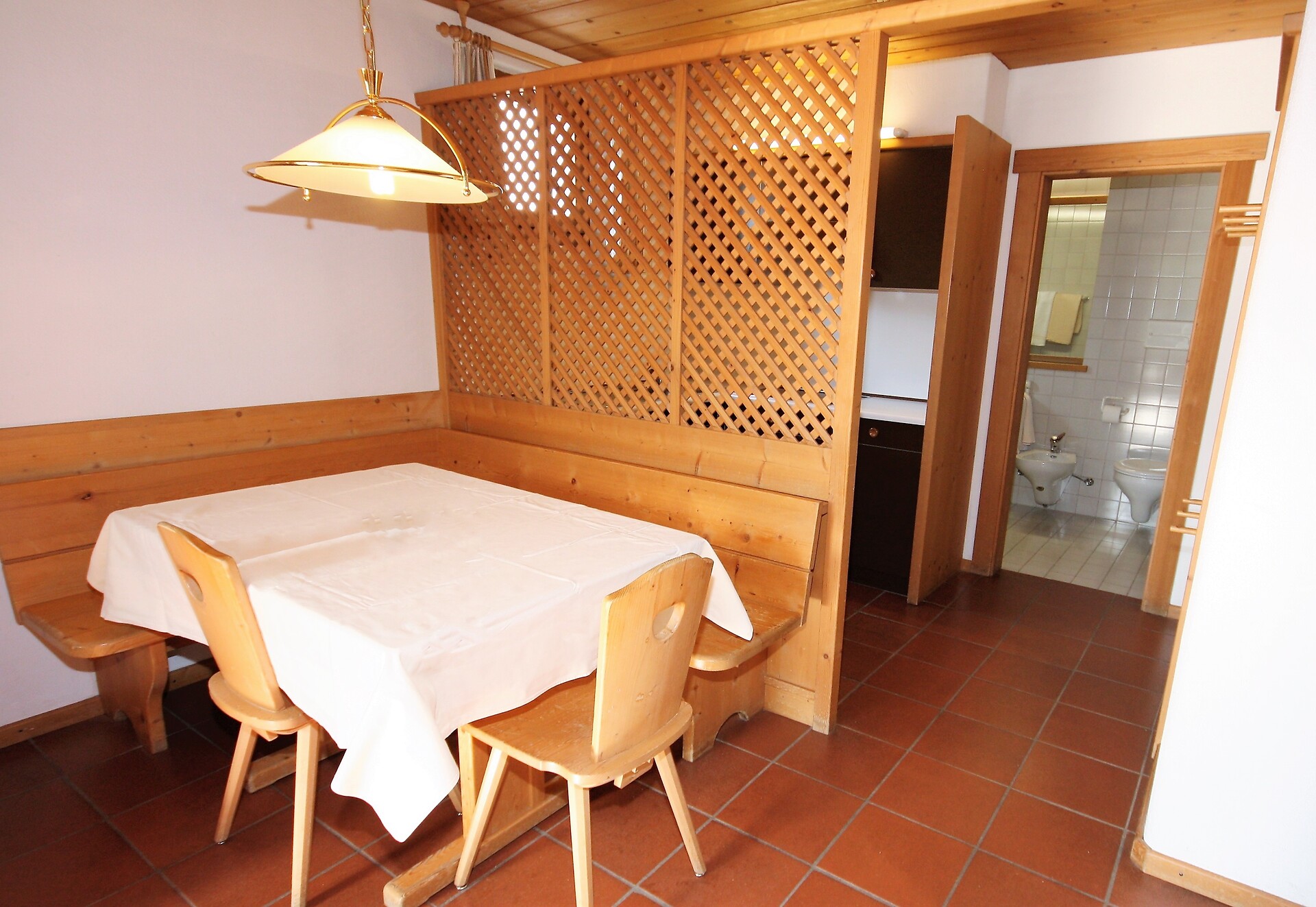 ideal for 6-7 persons: three-room apartment with 1 master bedroom, 1 room with 2 single beds, 1 further room with 2 single beds and 1 pull-out single sofa bed; living area with TV, cosy dining area, kitchenette with dishwasher, oven, coffee machine, kettle and toaster; bathroom with bath and bidet. Towels and bed linen are included in the room rate;